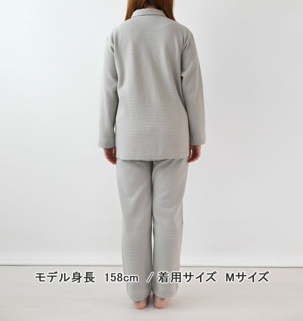 コットンワッフルニットレディースパジャマ 上下セット・長袖/前開き/襟あり