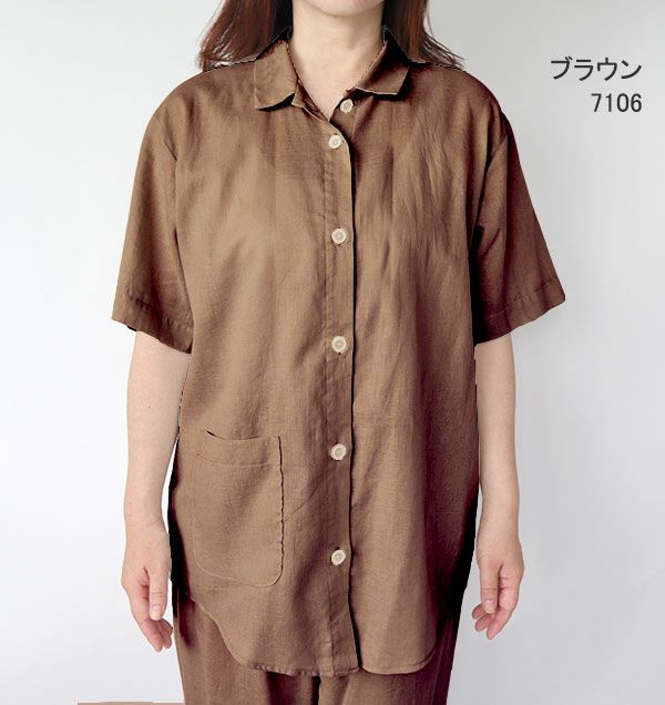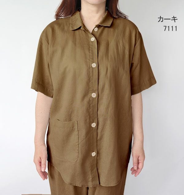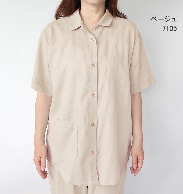 定番の前開き襟ありデザインのパジャマです。まるでシャツのようなデザインで、パジャマにはもちろん、涼しい夏の部屋着・ルームウェアにもぴったりです!