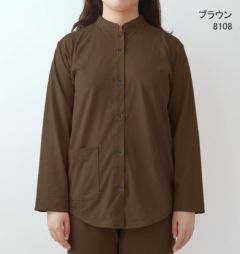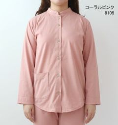まるでシャツのようなバンドカラーパジャマ。ボタンを一つ開けてもだらしなく見えないので、きちんと感があり部屋着・ルームウェアにぴったり!ストレッチが効いているので、のびのびストレスなくお過ごしいただけます。