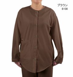やわらか天竺ニットレディース入院パジャマ 上下セット・長袖/前開き/襟なし