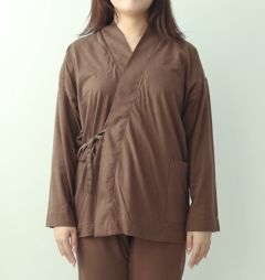 動きやすい楽々作務衣、紐調節で着脱も簡単