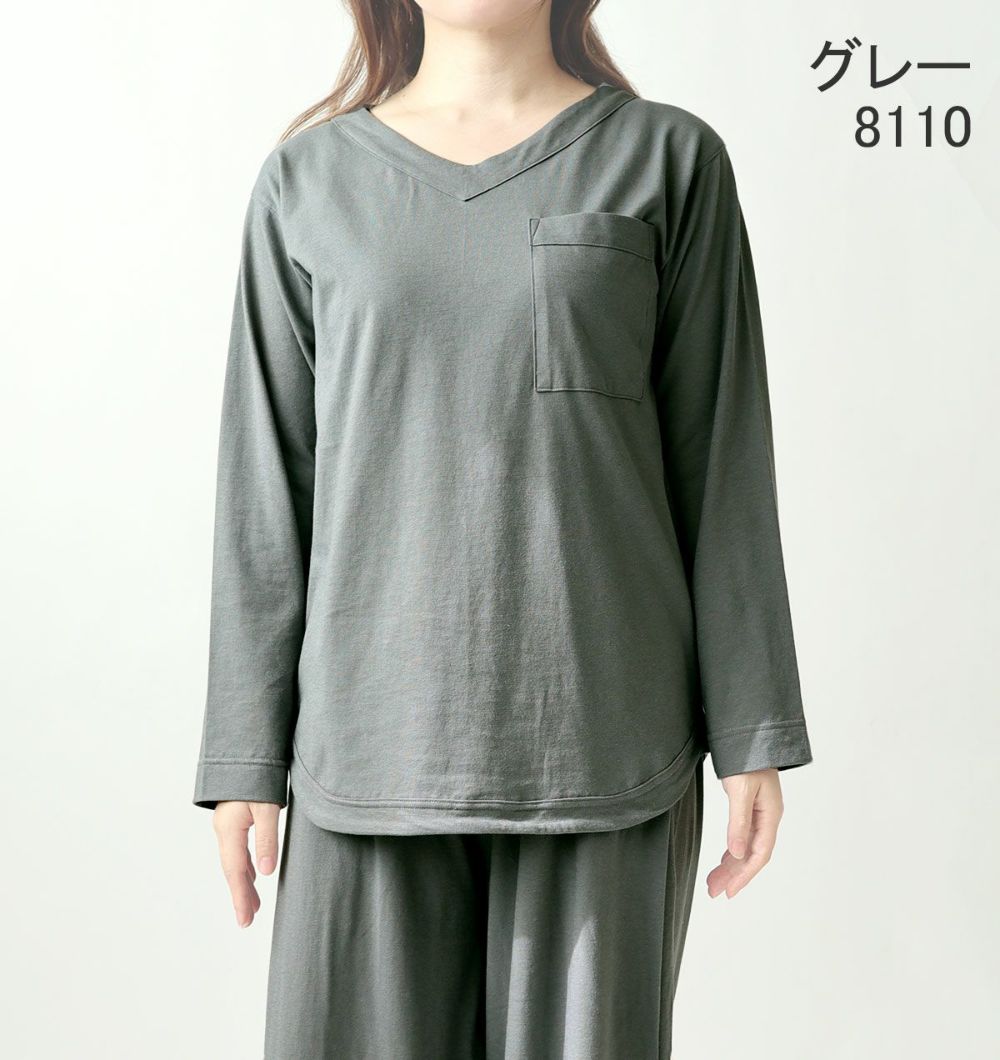 人気のVネックデザイン!レディースはガウチョパンツでさらにリラックス感アップ♪ 疲れた日も、けだるい朝も着替えたくないそんな日ありますよね。伸縮性抜群の天竺ニットでオールシーズン使えます。窮屈すぎないデザインで1度着たら病みつきになる部屋着にも最適、1日中着ていたくなる着心地です。