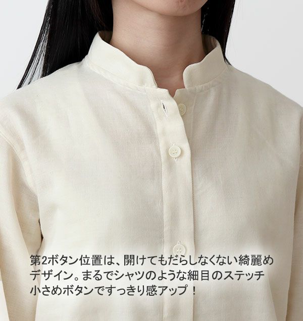 超長綿サテンをひきたてる、パイピング付オープンカラーの上品なデザイン。