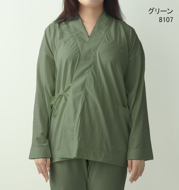 綿なのに、うれしい快適ストレッチ やわらか天竺ニットレディース作務衣上着単品・長袖 【オーダーメイド】