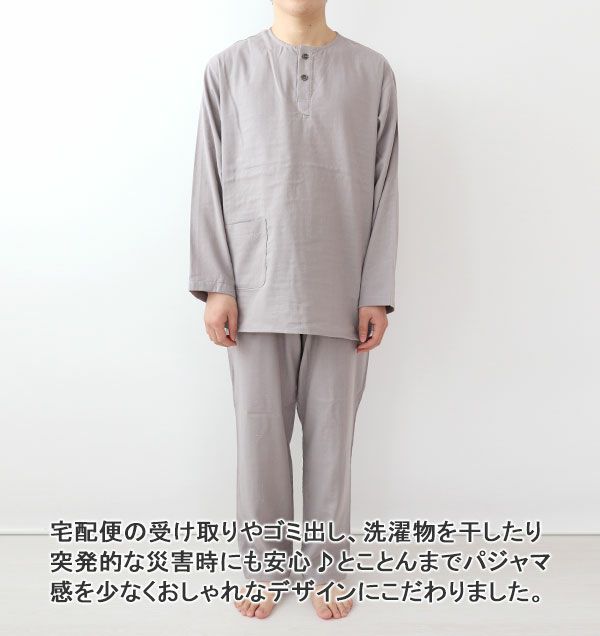 他の画像を見る 地球にもお肌にも優しい特別な風合い 40オーガニックコットンダブルガーゼメンズパジャマ上下セット・長袖/前開き/襟なし 【オーダーメイド】 春 秋 綿 ガーゼ オーガニック 【税込価格】 ¥ 12,100 税込 地球にも人にも優しいオーガニックコットンダブルガーゼのおしゃれなメンズパジャマの登場です!バンドカラーデザインでちょっとそこまでの外出も可能で、柔らかな心地良い肌触りでお部屋時間を充実させてくれます! (0) 詳細を見る お気に入りに登録する