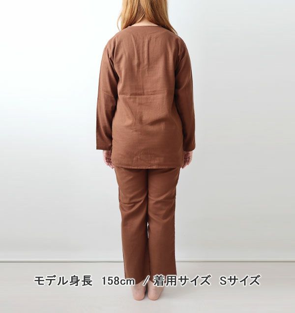 地球にもお肌にも優しい特別な風合い 40オーガニックコットンダブルガーゼレディースパジャマ上着単品・長袖/かぶり/ラウンドネック 【オーダーメイド】