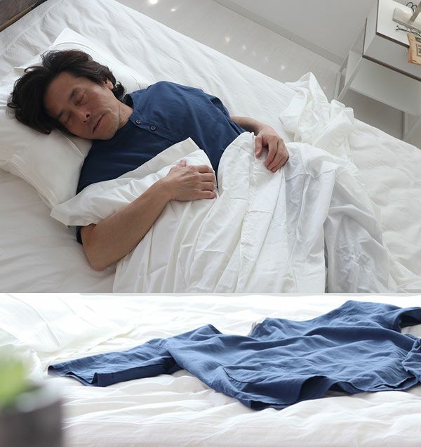 優れた通気性と軽量性で一日中快適な着心地が続く、オーガニック超長綿ダブルガーゼメンズパジャマにヘンリーネックデザインが登場です!ふわっと柔らかな肌触りなのにさらっとした着用感、かぶりタイプだから着替えもラクチンでおすすめです!