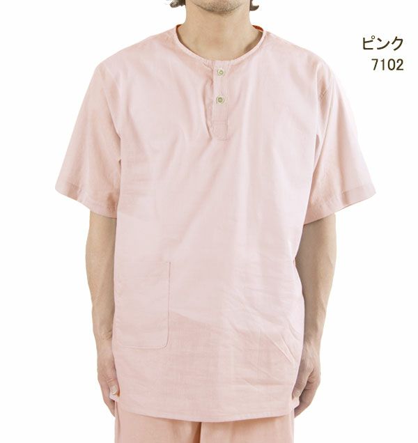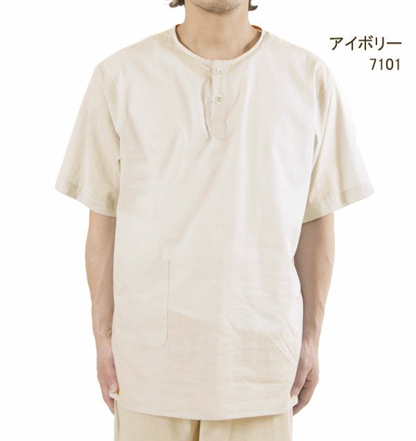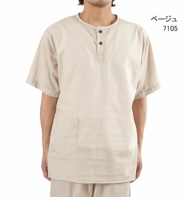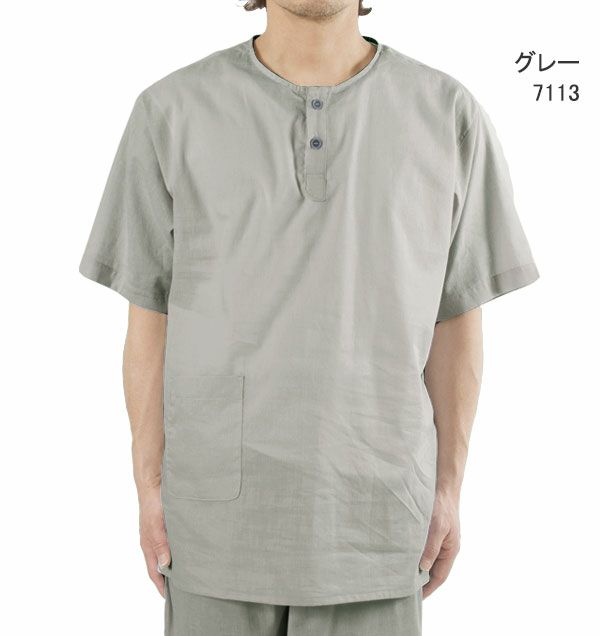新感覚ガーゼ!柔らかいのにサラサラの肌触り 80オーガニック超長綿1重ガーゼメンズパジャマ上下セット・半袖/かぶり/短パン/ヘンリーネック 【オーダーメイド】