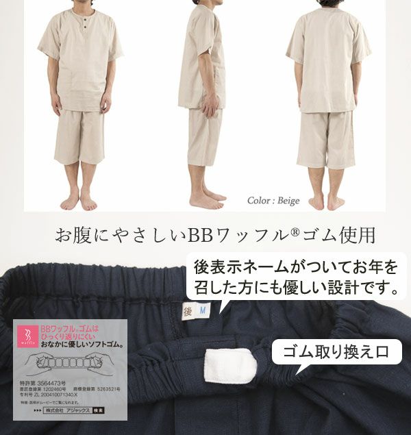 夏に最適、抜群の通気性の綿100%1重ガーゼパジャマのメンズXS~12L。半袖短パンタイプでクーラーをつけない方、とにかく暑がりの方におすすめです。和晒製法で作られたガーゼ地で極上の柔らかさです。さらに袖丈・着丈・ズボン丈の長さを調整可能!