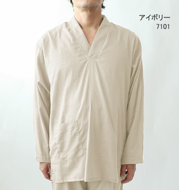 柔らか×軽い×涼しい!和晒製法の1重ガーゼ 夏のかるふわガーゼメンズ作務衣下着・ズボン付/長袖/かぶり 【オーダーメイド】