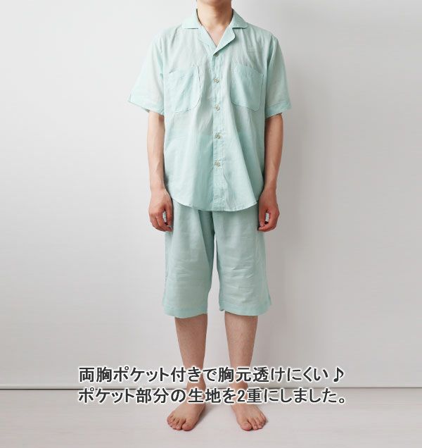 柔らか×軽い×涼しい!和晒製法の1重ガーゼ 夏のかるふわガーゼメンズパジャマ・半袖/前開き/短パン/開襟【オーダーメイド】