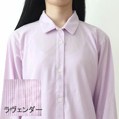 夏でもニットが着たい方に!針抜き手法で通気性抜群のサッカー生地は、べたつかず快適。伸縮性があるので、いつでもリラックスしてお過ごしいただけます。