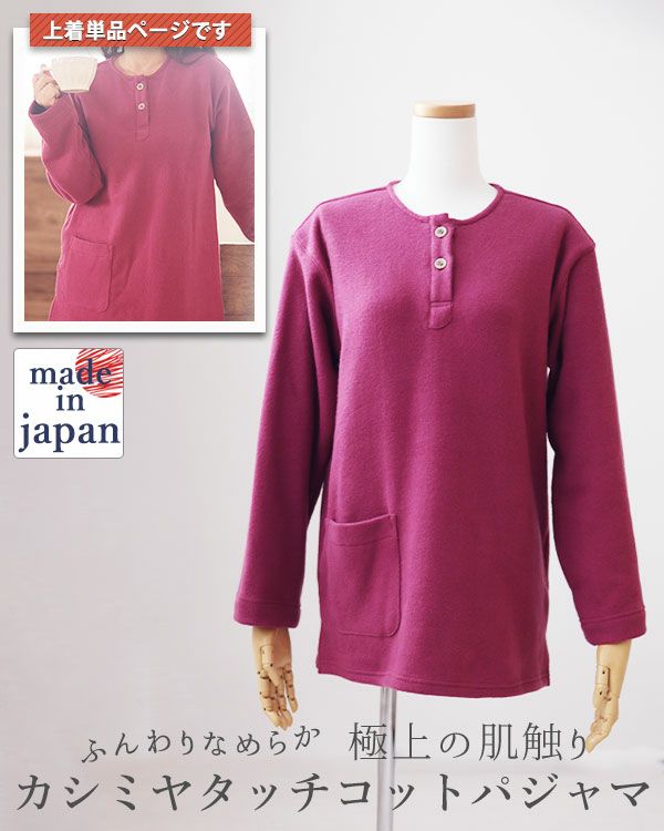 カシミヤタッチコットレディースパジャマ 上着単品・長袖/かぶり/ヘンリーネック