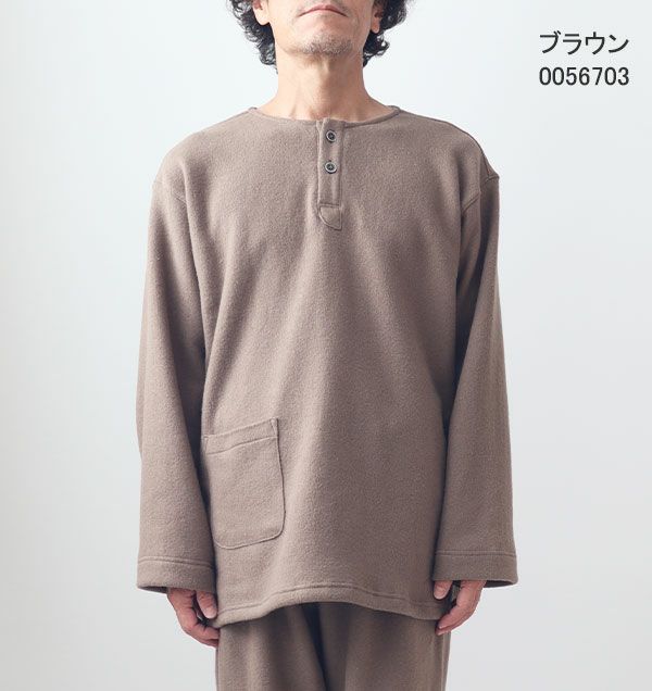 カシミヤタッチコットメンズパジャマ 上下セット・長袖/かぶり/ヘンリーネック