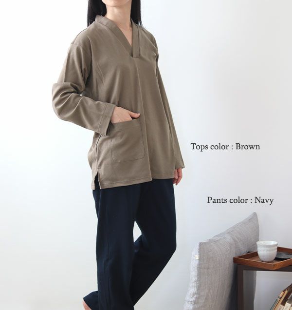 綿100%のスムースニットパジャマのラインナップです。細番手の40番手のコーマ糸を使うことで特別柔らかく、さらに染め工程の仕上げでふっくらにする風合い加工を施すことにより、まるで「ムースのような肌触り」の由来ともいえる、たっぷり空気を含んだ、もっちりなめらかな冬のニットパジャマが出来上がりました。