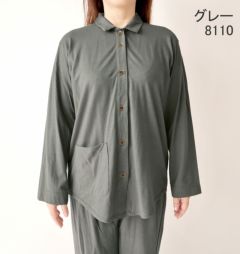 やわらか天竺ニットレディースパジャマ 上下セット・長袖/前開き/襟あり