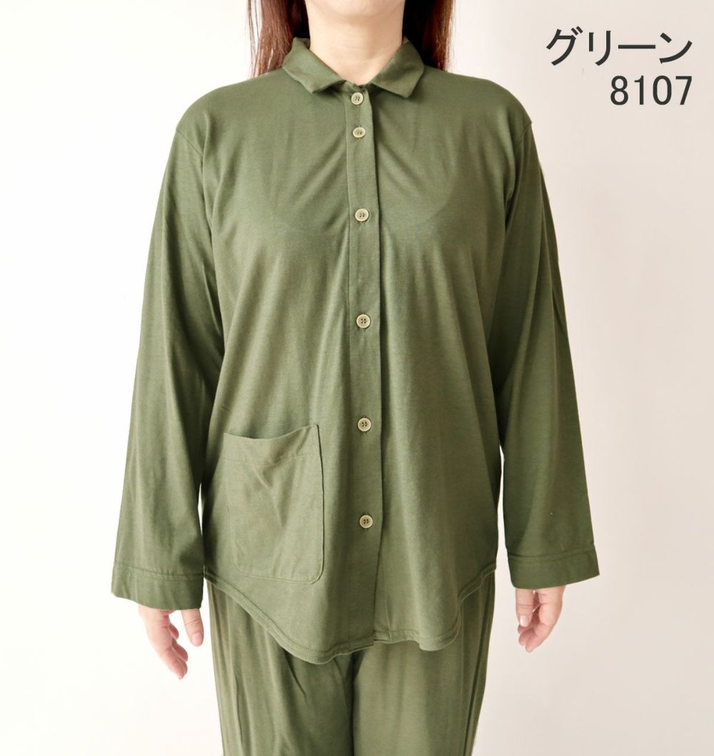やわらか天竺ニットレディースパジャマ 上着単品・長袖/前開き/襟あり