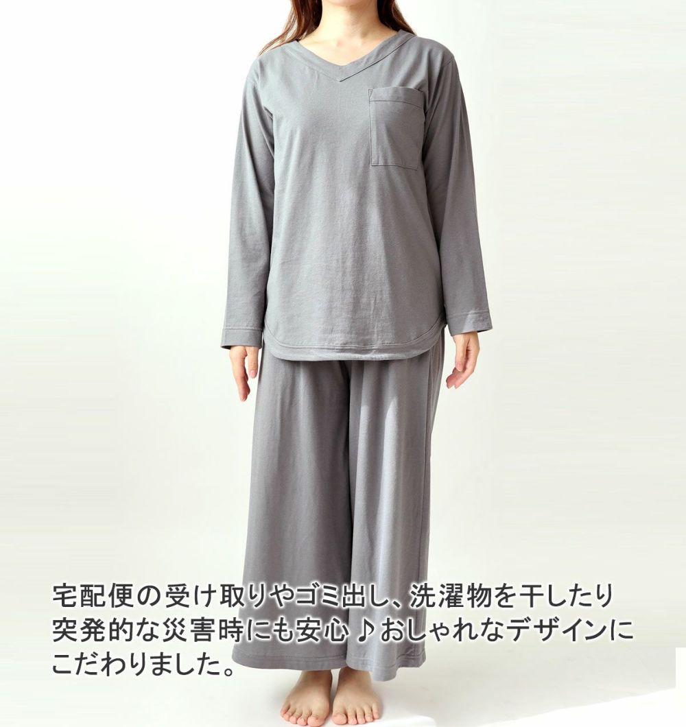 人気のVネックデザイン!レディースはガウチョパンツでさらにリラックス感アップ♪ 疲れた日も、けだるい朝も着替えたくないそんな日ありますよね。伸縮性抜群の天竺ニットでオールシーズン使えます。窮屈すぎないデザインで1度着たら病みつきになる部屋着にも最適、1日中着ていたくなる着心地です。