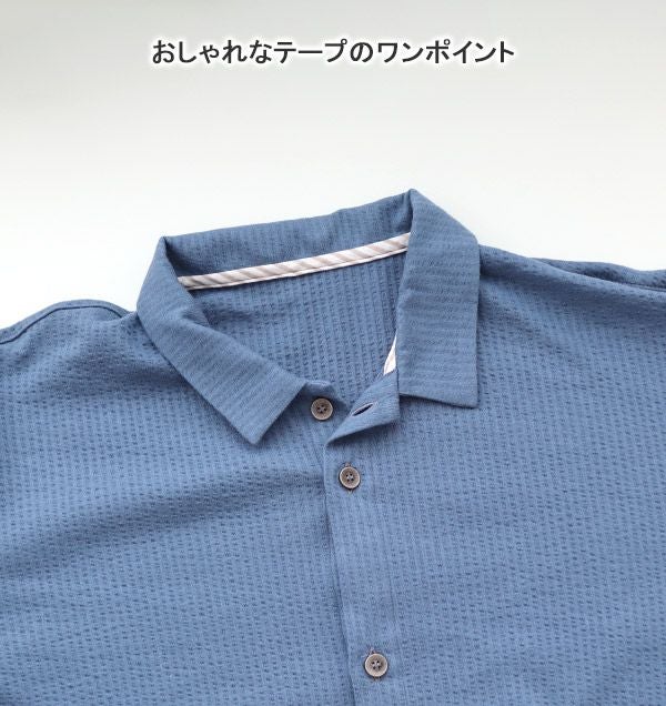 夏でもニットが着たい方に!針抜き手法で通気性抜群のサッカー生地は、べたつかず快適。伸縮性があるので、いつでもリラックスしてお過ごしいただけます。