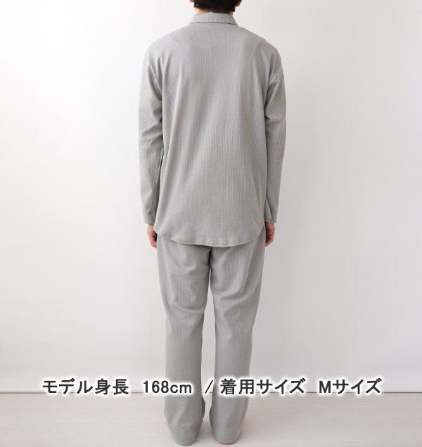 オーガニックコットンスムースニットメンズパジャマ上下セット・長袖/前開き/襟あり