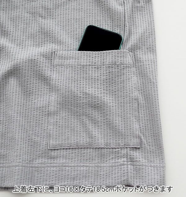 メンズ甚平の上着単品です!素材にはニットサッカーを採用、サッカー地でぽこぽこした凹凸でべたつかず、ニットだから柔らかくストレッチ性があり、リラックスしてお使いいただけます。