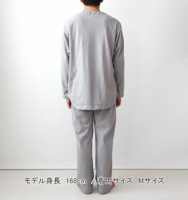 べたつかない、夏のやわらかリラックス ニットサッカーメンズパジャマ上着単品・長袖/かぶり/Vネック 【オーダーメイド】