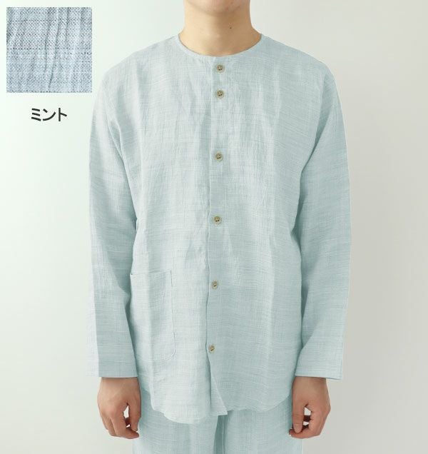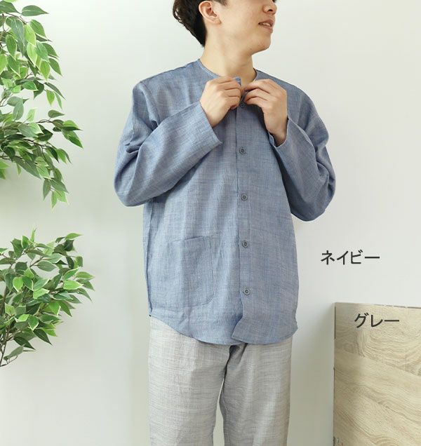 他の画像を見る 夏の定番!清涼感あるシボ加工でべたつかない 近江ちぢみ麻メンズパジャマ 上下セット・半袖/かぶり/襟なし 【オーダーメイド】 夏 麻 【税込価格】 ¥ 16,390 税込 近江ちぢみの麻100%パジャマ上着単品です。メンズXS~5L。ちぢみのシボ加工でべたつかなく涼しい夏の定番パジャマです。先染シャンブレーで光沢も美しい一枚。半袖短パンのヘンリーネックデザインで夏のルームウェアとしても大活躍の1枚です。 5.00 (4) 詳細を見る お気に入りに登録する