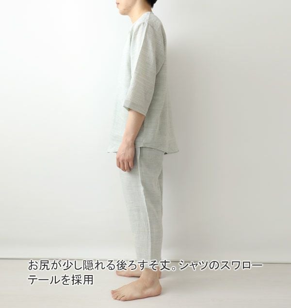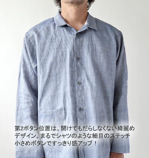 他の画像を見る 夏の定番!清涼感あるシボ加工でべたつかない 近江ちぢみ麻メンズパジャマ上着単品・長袖/かぶり/ヘンリーネック 【オーダーメイド】 夏 麻 【税込価格】 ¥ 13,860 税込 清涼感あふれる近江ちぢみのメンズパジャマ上着単品です!麻ならではの抜群の吸放湿性で蒸れにくく、ちぢみ特有のシボ感でべたつかないのが特徴です。おしゃれなヘンリーネックデザインでルームウェアにも最適です。 (0) 詳細を見る お気に入りに登録する
