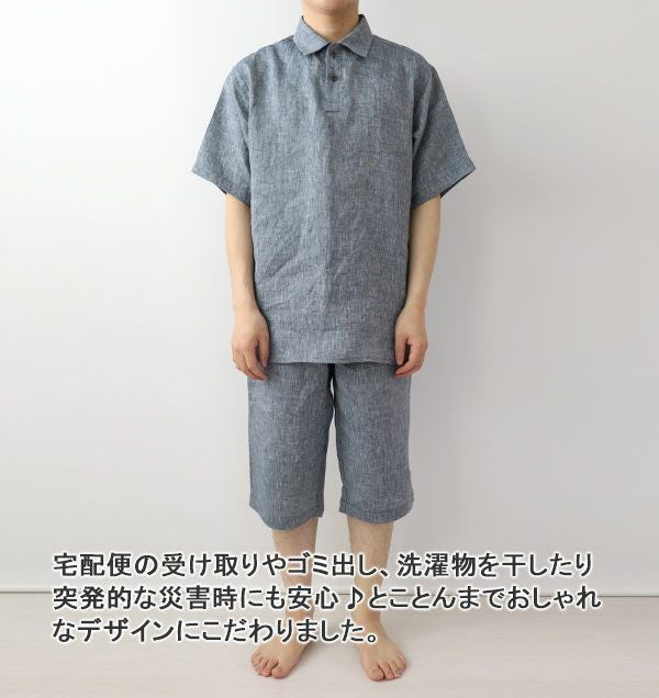ゆったりリラックス感抜群で就寝時も快適なつくるパジャマのポロカラー。先染めのフランスリネンポロカラーはひんやり涼しく快適♪おしゃれなシャンブレー生地の先染めリネンは、パジャマはもちろんルームウェアにもぴったりです!