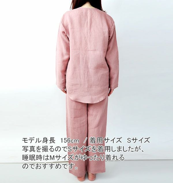 クーラーをつけて過ごしても冷えにくい前開きの長袖丈。フランスリネンは麻のチクチク感が苦手な人にも安心な柔らかい風合いで汗をかいてもさらさらな生地なので、夏にもおすすめです。動きやすいからパジャマとしてだけでなくルームウェアとしても