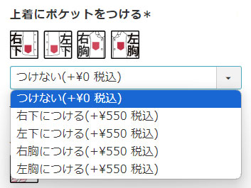 ※ズボンのポケットオプションを付けられる方は、スマホやお財布など重いものをポケットに入れられる方が多いので、薄い生地などの場合で、ズボンが下がるのが心配な方は、ウェスト紐オプションを合わせてご注文頂くのがお勧めです。