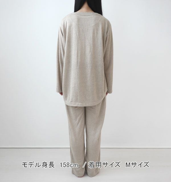 やわらかリネンはテロンとしていてまるでカーディガンのような仕上がり!ズボンだけかえればゴミ出しはもちろん外出にも着ていけそうです!涼しい夏の爽快ルームウェアとしても