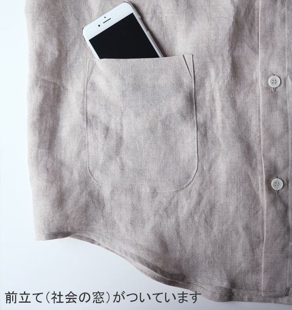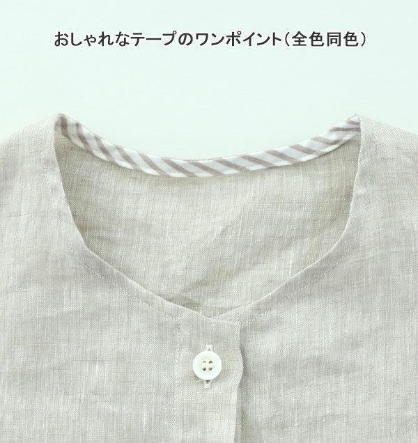 洗い加工のフランスリネンで優雅な夏を やわらかるいリネンレディースパジャマ上着単品・長袖/前開き/バンドカラー 【オーダーメイド】