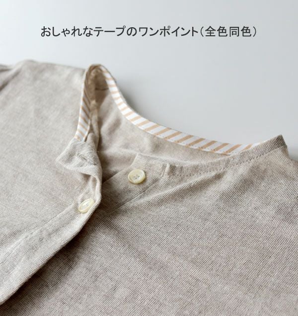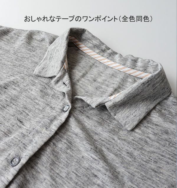 リネン×ストレッチ!夏の快適リラックスパジャマ やわらかニットリネンレディースパジャマ上着単品・長袖/前開き/襟なし 【オーダーメイド】