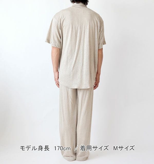 リネン×ストレッチ!涼しく優雅にリラックス やわらかニットリネンメンズパジャマ上着単品・半袖/前開き/襟あり 【オーダーメイド】
