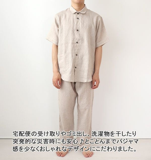 やわらかるいリネンメンズパジャマ 上下セット・半袖/かぶり/ポロカラー/短パン