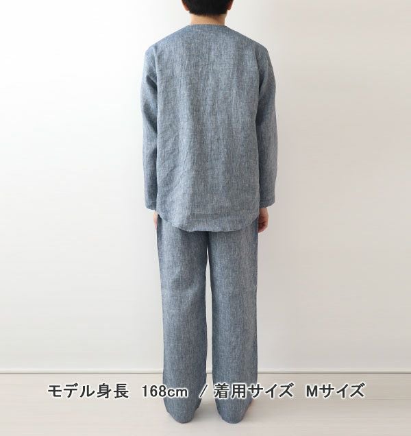 60先染めフランスリネンメンズパジャマ上下セット・長袖/前開き/襟あり