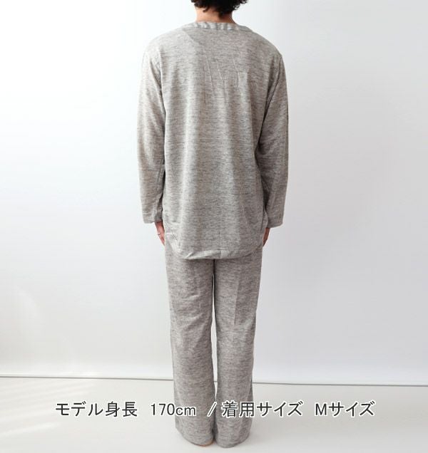 やわらかニットリネンメンズパジャマ 上下セット・長袖/かぶり/Vネック