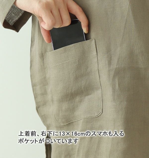 洗い加工のフランスリネンで優雅な夏を やわらかるいリネンレディース作務衣上着単品・長袖 【オーダーメイド】
