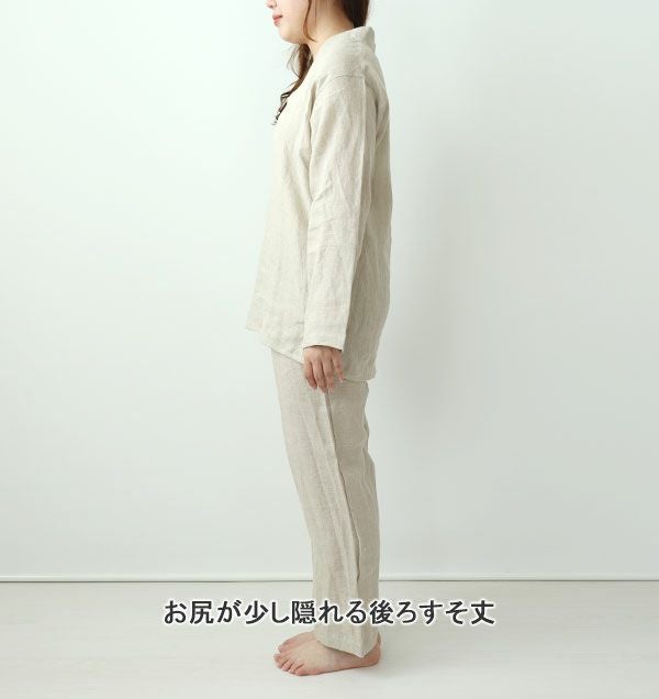 60先染めフランスリネンレディースパジャマ上下セット・長袖/前開き/襟なし