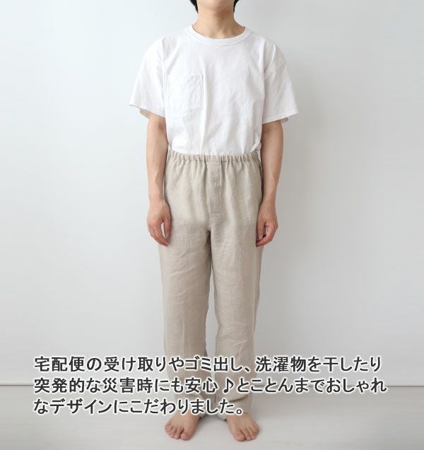洗い加工のフランスリネンで優雅な夏を やわらかるいリネンメンズパジャマズボン単品/長ズボン 【オーダーメイド】