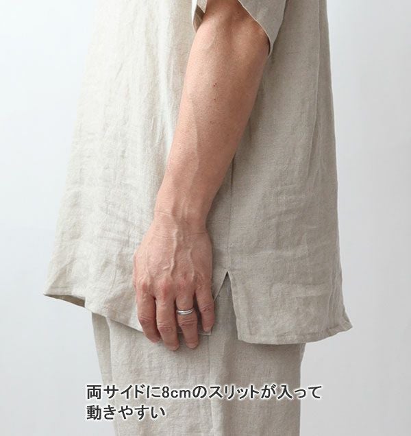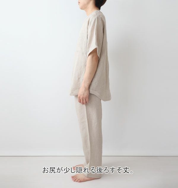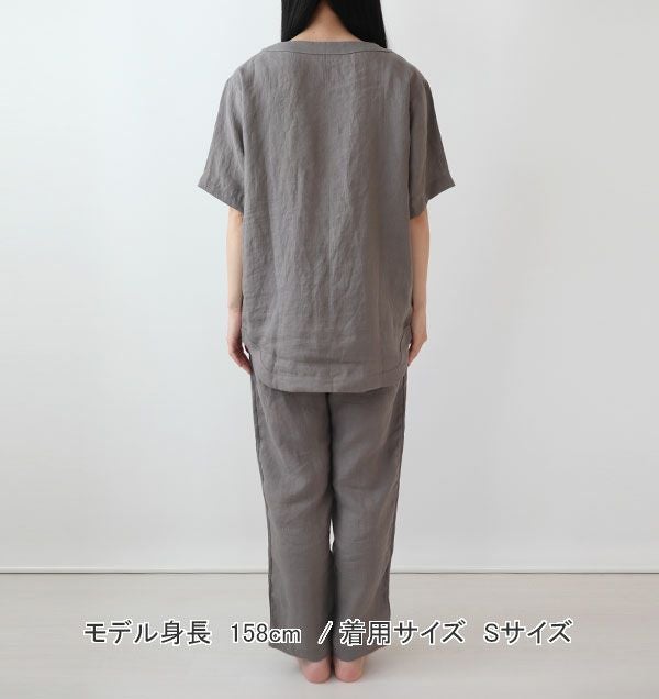 やわらかるいリネンレディースパジャマ上下セット・半袖/かぶり/ヘンリーネック/短パン
