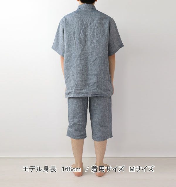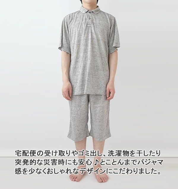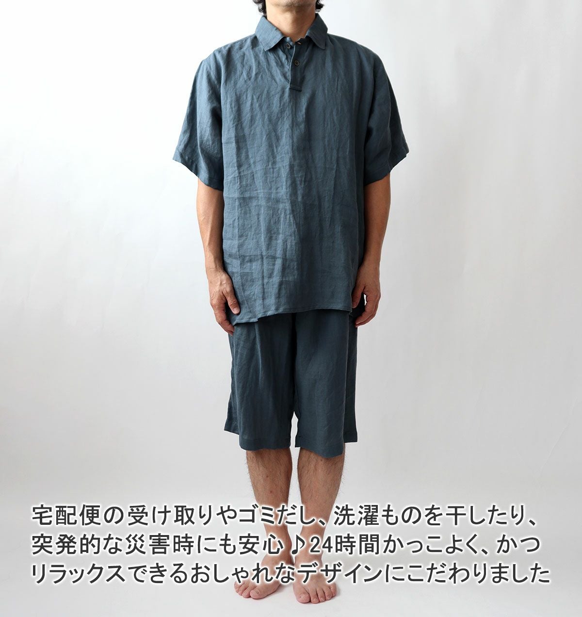 やわらかるいリネンメンズパジャマ 上下セット・半袖/かぶり/ポロカラー/短パン