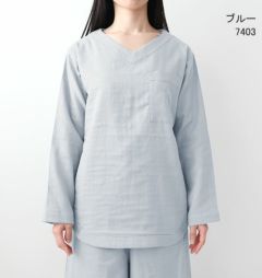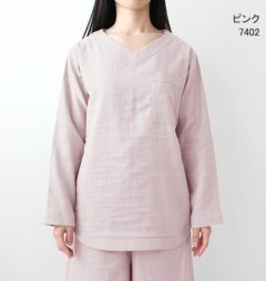 | 仕様 | 長袖 ガウチョパンツ(8分丈) 上下セット /上着:かぶり 襟なし Vネック 左胸ポケット |
