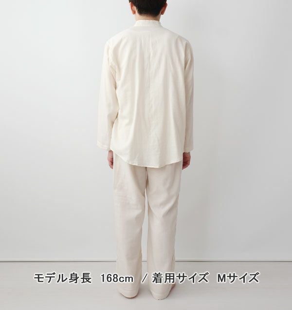 地球にもお肌にも優しい特別な風合い 40オーガニックコットンダブルガーゼメンズパジャマ上下セット・長袖/前開き/バンドカラー 【オーダーメイド】