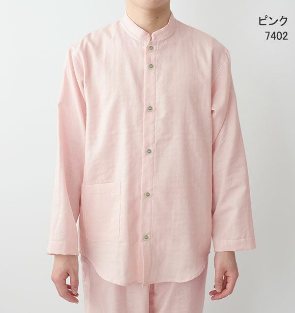 40オーガニックコットンダブルガーゼメンズパジャマ上下セット・長袖/前開き/バンドカラー