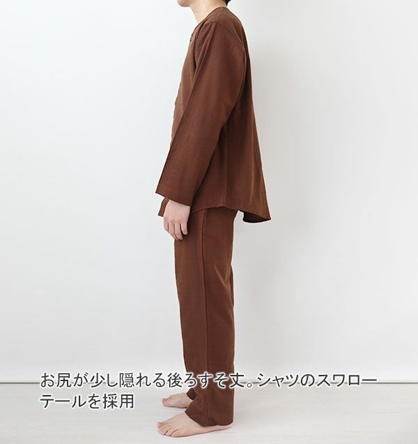 40オーガニックコットンダブルガーゼメンズパジャマ上下セット・長袖/前開き/襟なし