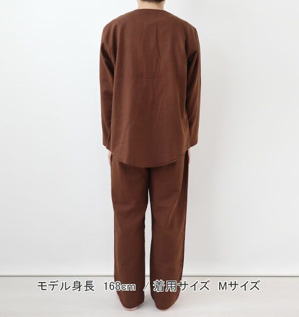 | 仕様 | 長袖 長ズボン 上下セット (上着)前開き 襟なし 右下ポケット (ズボン)社会の窓つき |