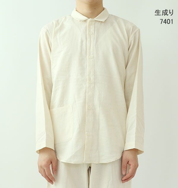 お肌にやさしい縫製仕様 40オーガニックコットンダブルガーゼメンズ敏感肌パジャマ上下セット・長袖/前開き/襟あり 【オーダーメイド】
