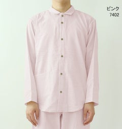 40オーガニックコットンダブルガーゼメンズ敏感肌パジャマ上下セット・長袖/前開き/襟あり